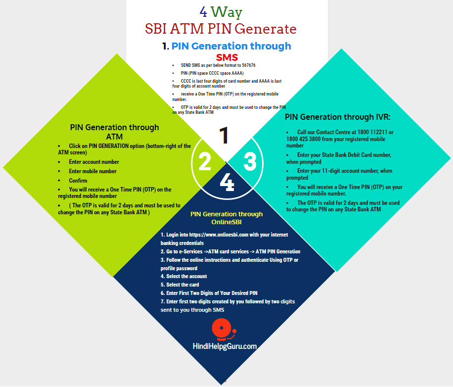 SBI Me Hota ye Hai Ki Jab Aap New ATM Card lete Hai tab Isaka PIN SBI Branch thhrough Diya njata hai. Aapka Pin Post Se Milta Hai. But Isame Kuchh Deri lagatti hai. Yahan Aap ko SBI ATm Pin generate karne Ke Sabhi Option Diye Hai.